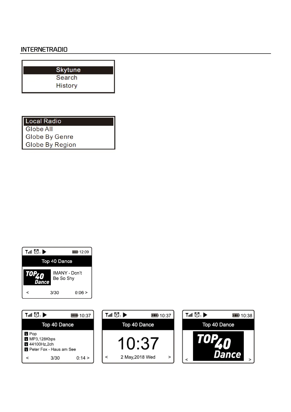 Wählen Sie im Hauptmenü Internet-Radio und Sie finden die untenstehenden Optionen: