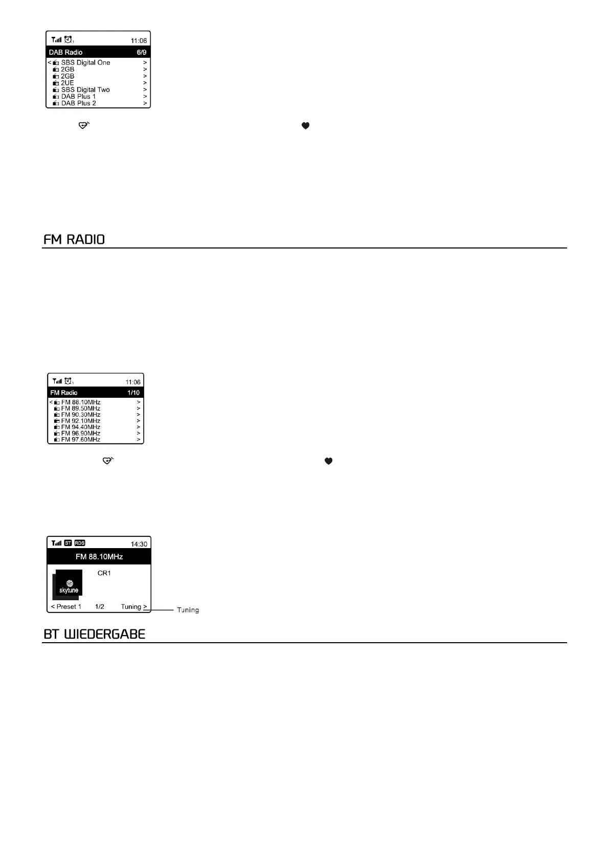 Hinweis: Wenn ein DAB-Radio abgespielt wird, drücken Sie die Taste [►] um weitere Radioinformationen anzuzeigen. Jedes