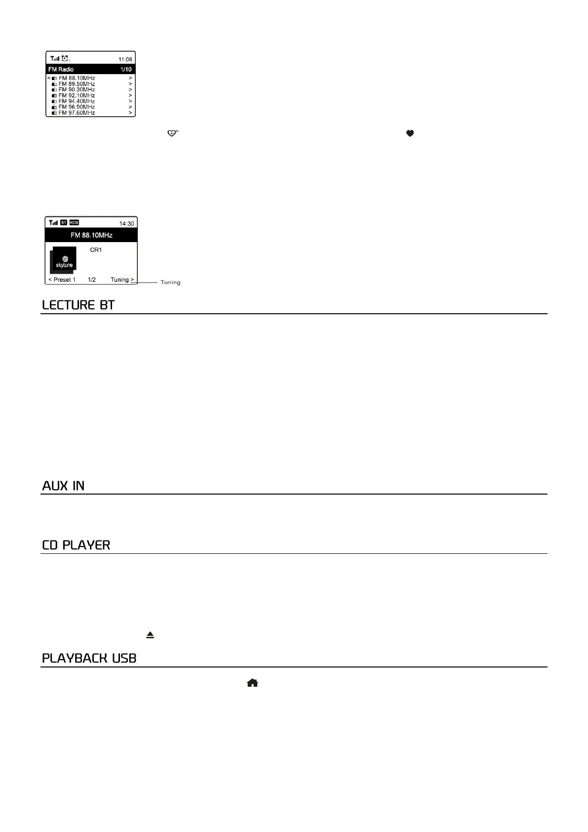 Remarque: Lorsque la radio FM est en cours de lecture, appuyez sur la touche [►] pour afficher plus d'informations sur la