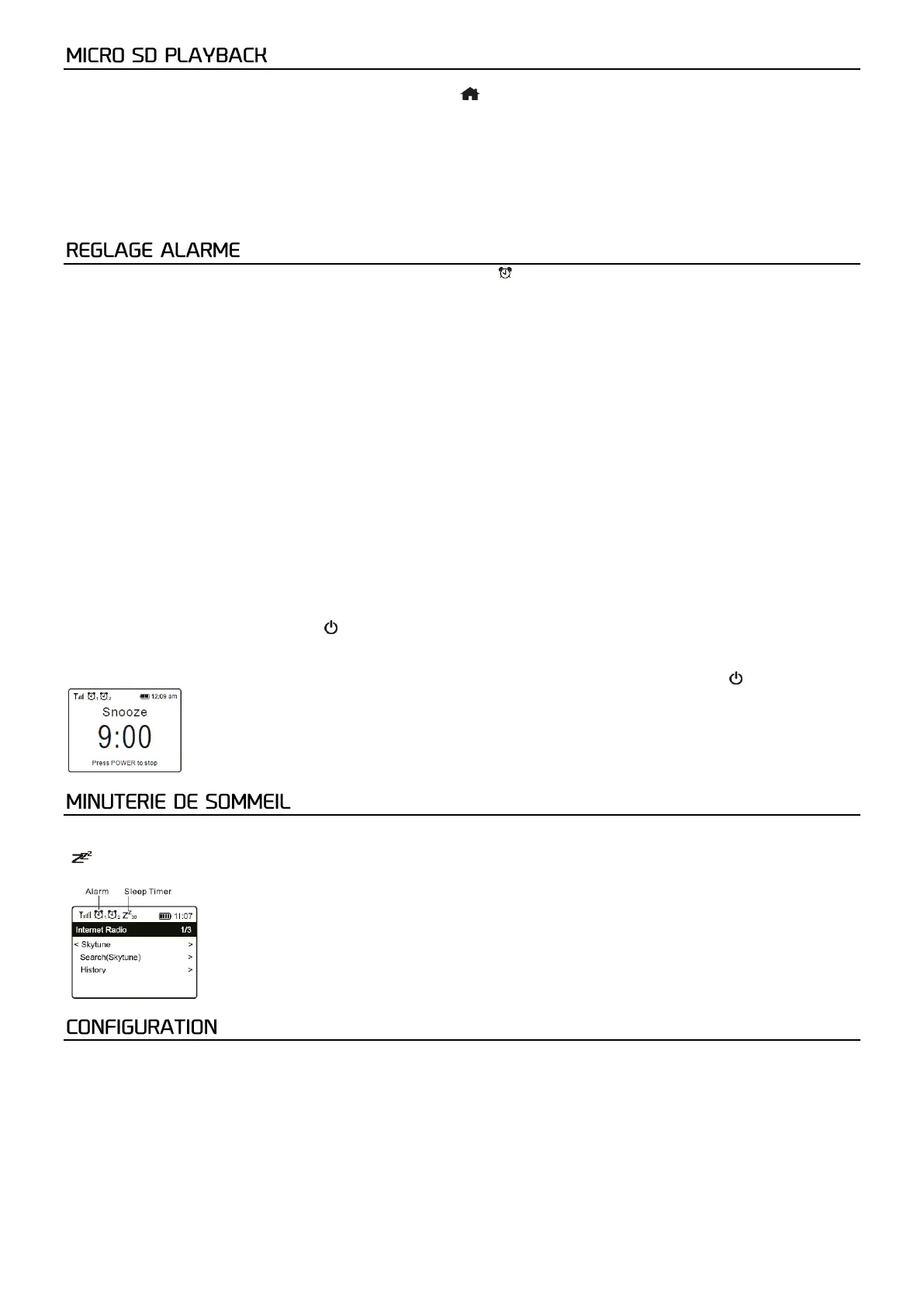 Sound - Vous pouvez choisir Wake to Tone, My Favourite, Wake to FM Radio ou Wake to DAB Radio comme source de