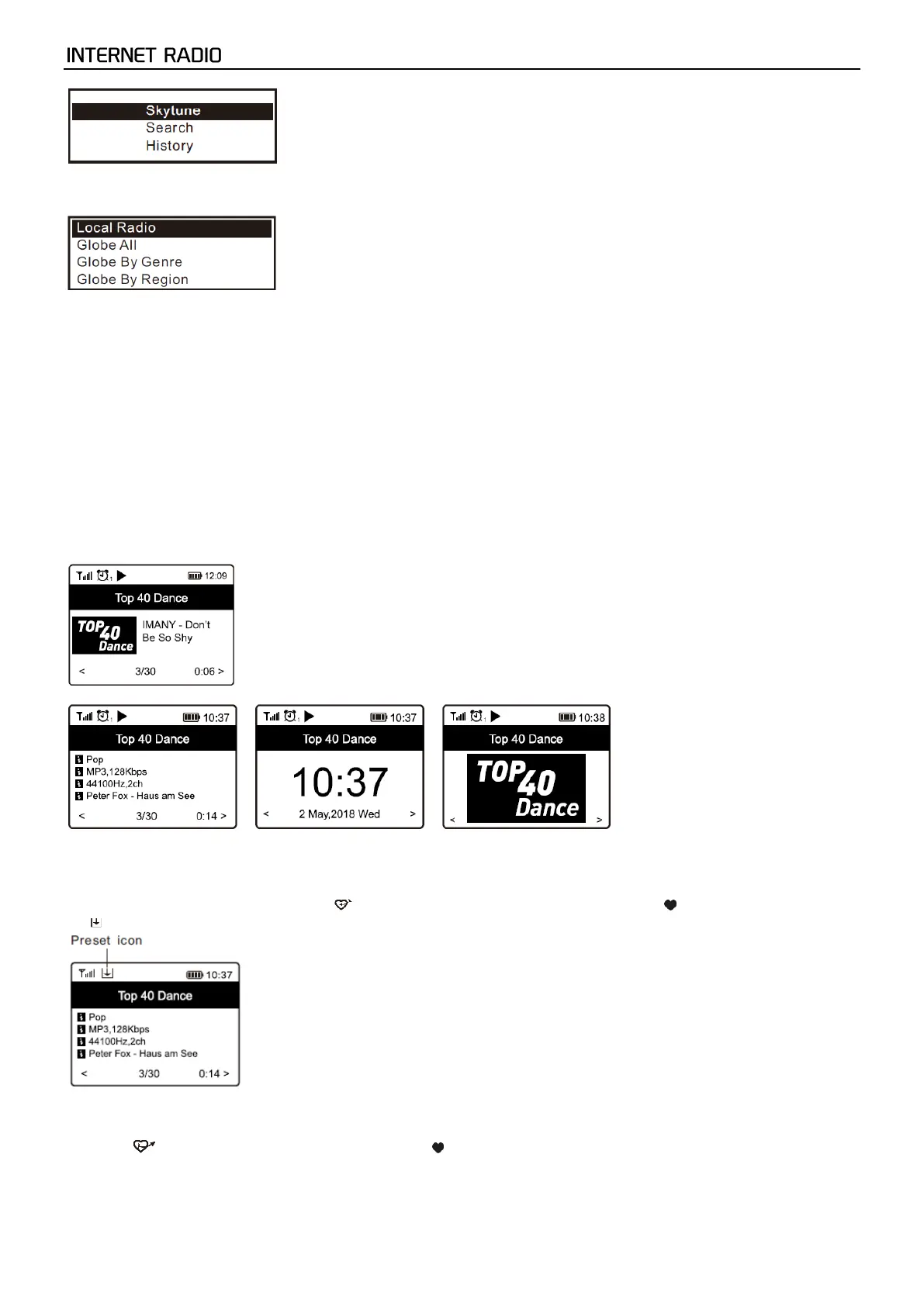 Select Skytune to start enjoying thousands of radio stations over the world. You can filter your search by Region, Music genre