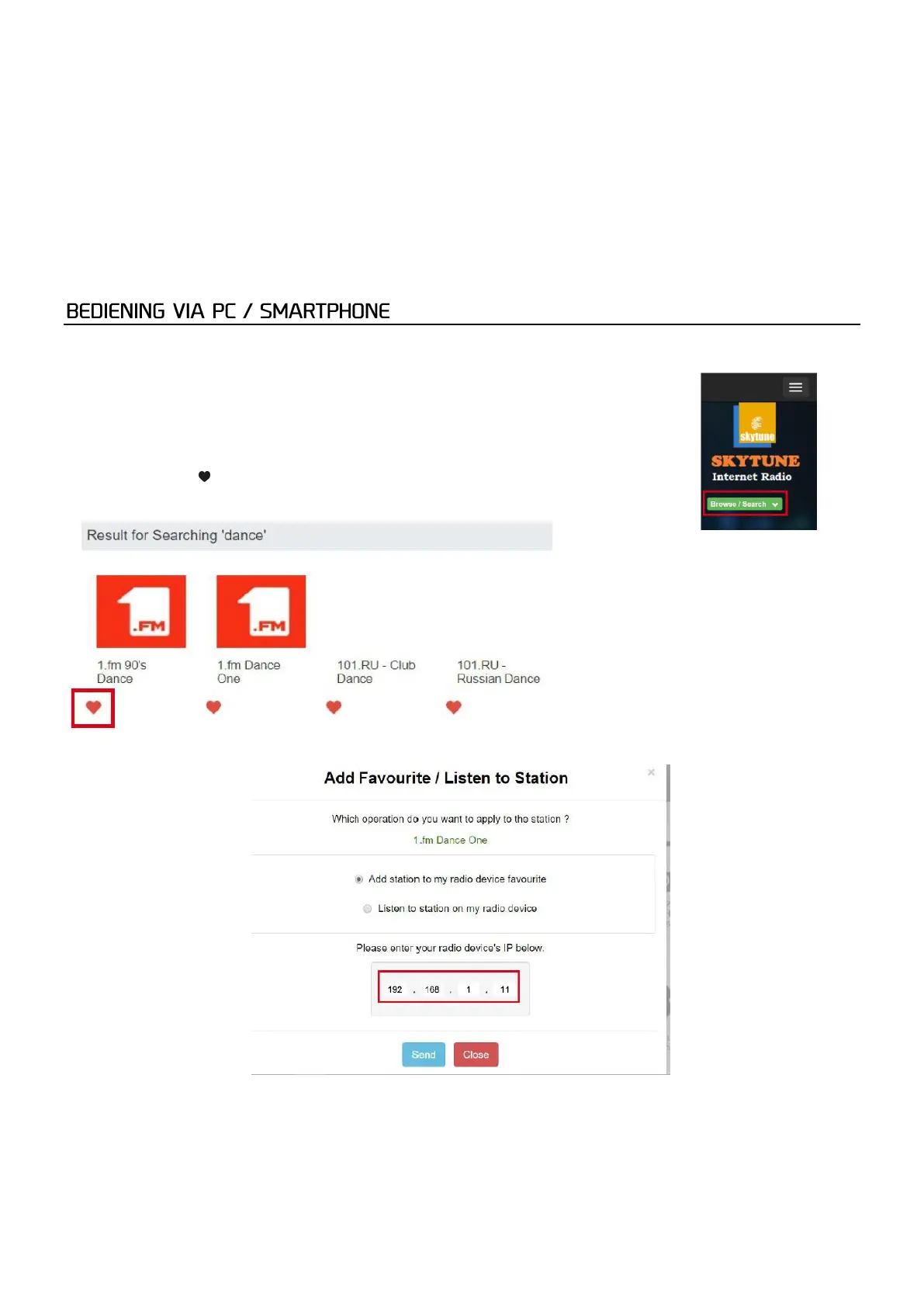 • Het zal u vragen of u "Add Favourite" of "Listen to Station " moet toevoegen. Voer het IP-adres van uw radio in (bijv.