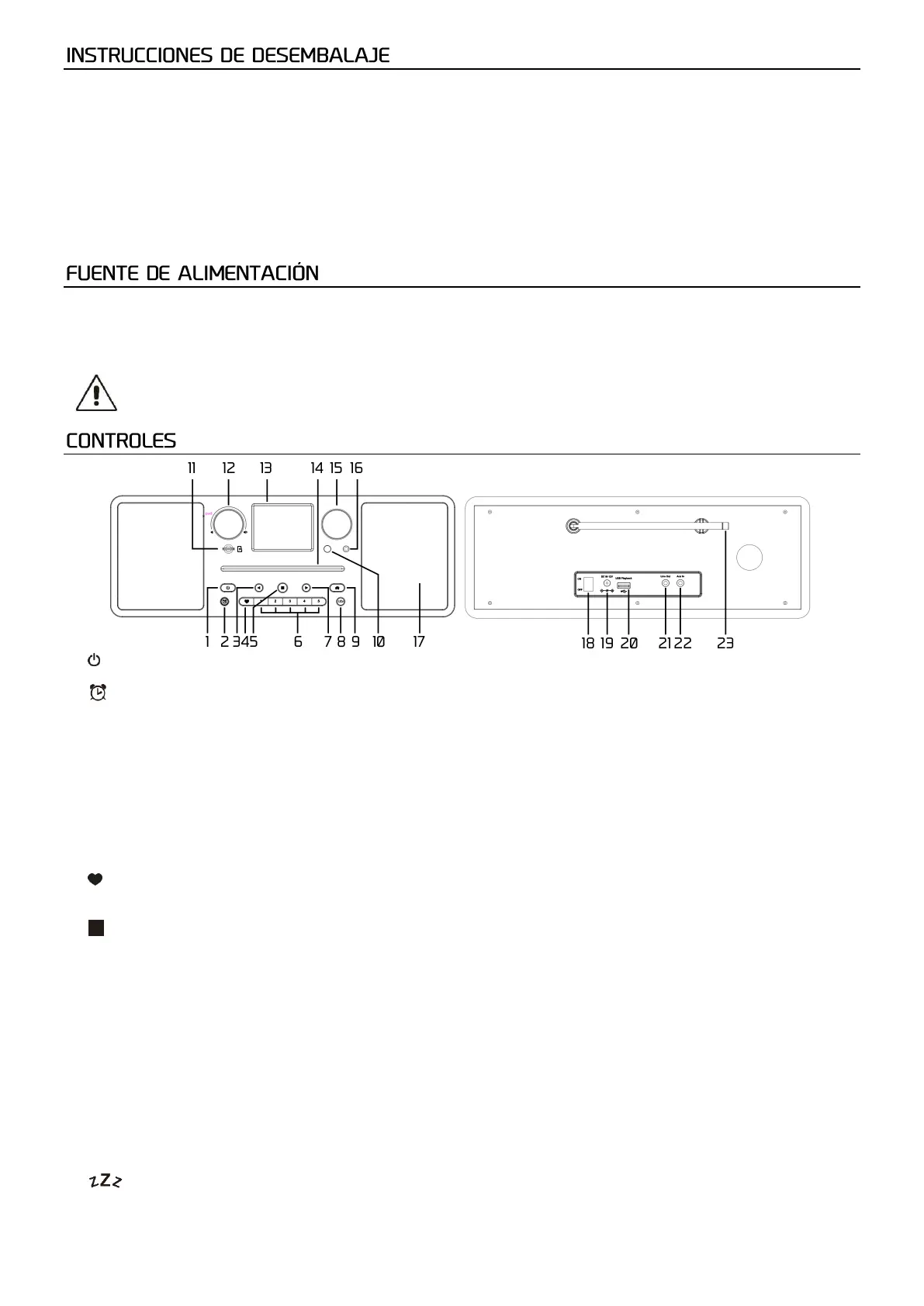 Pulse para poner la radio en/salir del modo de espera.