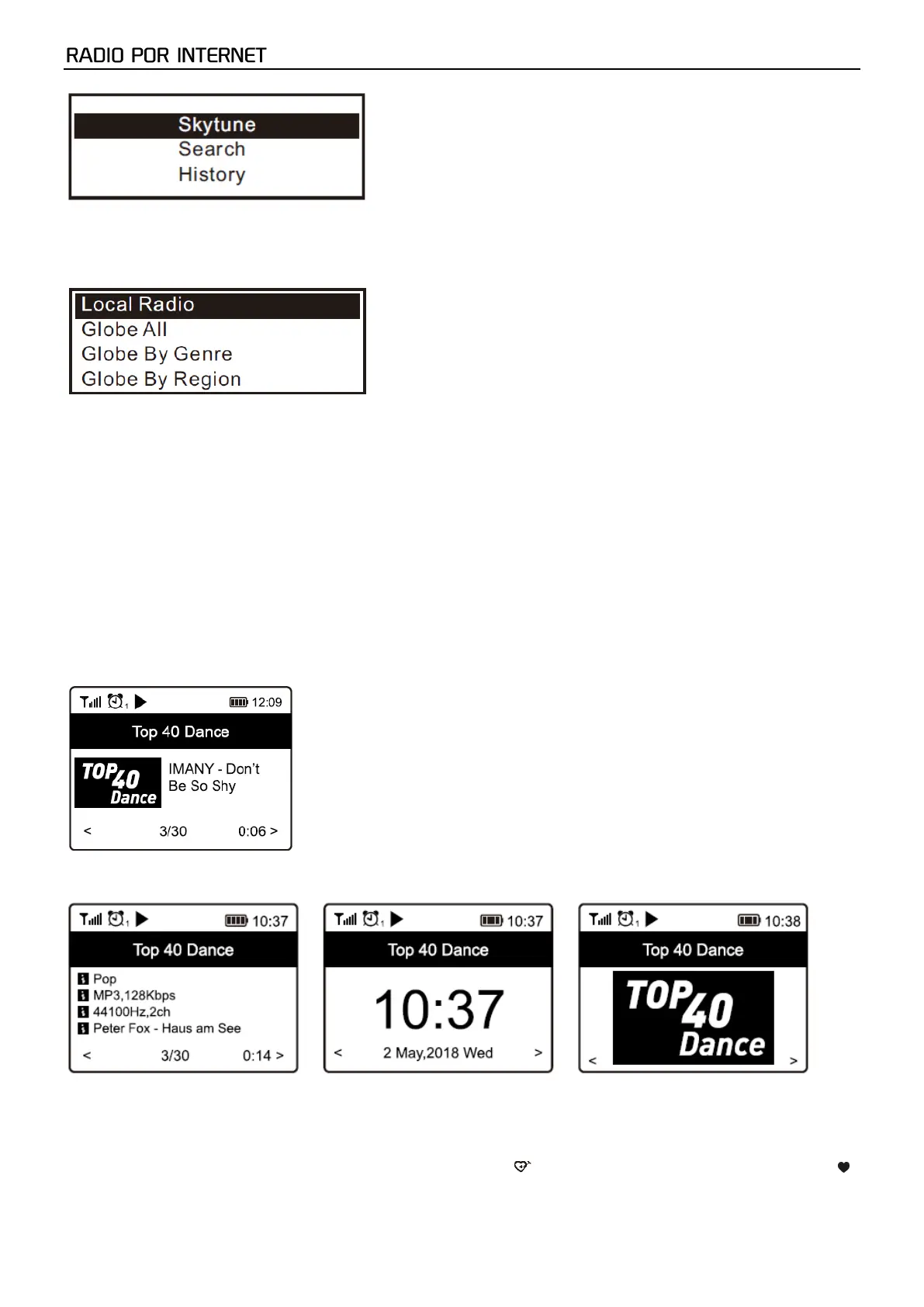 En el menú principal, elija Radio por Internet y encontrará las siguientes opciones: