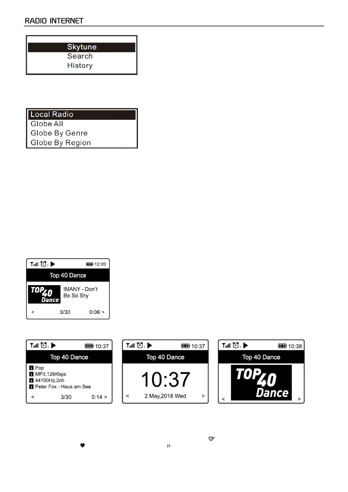 Dans le menu principal, choississez Radio Internet, les options ci-dessous d’affichent :