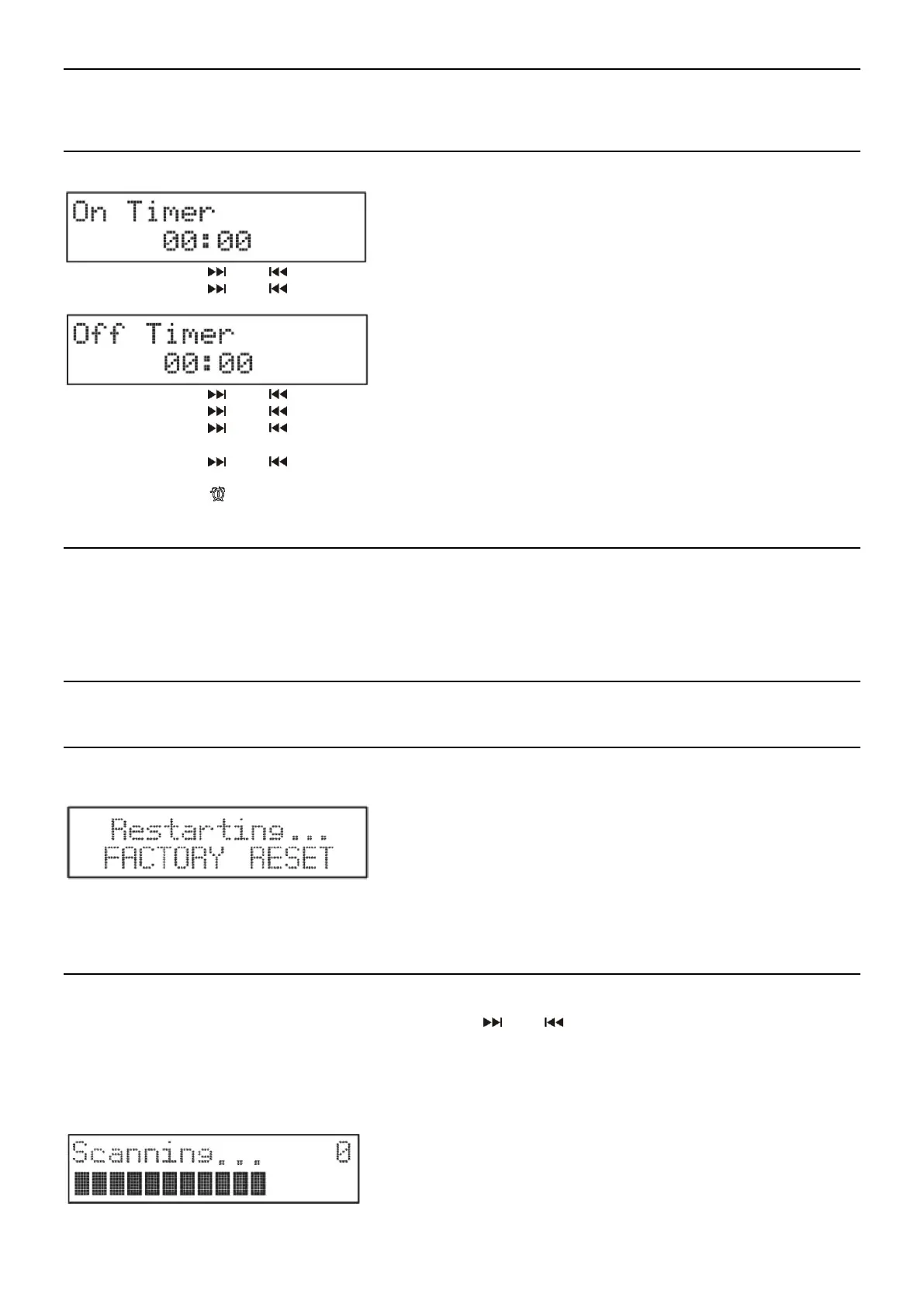 Stellen Sie bei “Timer On” eine Zeit ein, in der sich Ihr Radio automatisch einschaltet. Bei “Timer Off” stellen Sie die Uhrzeit