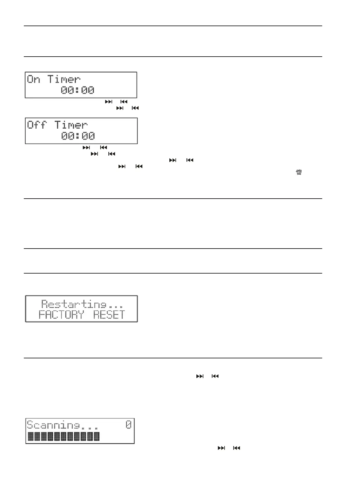 Use "Timer On" para establecer una hora para que su radio se encienda automáticamente. Use "Timer Off" para configurar la