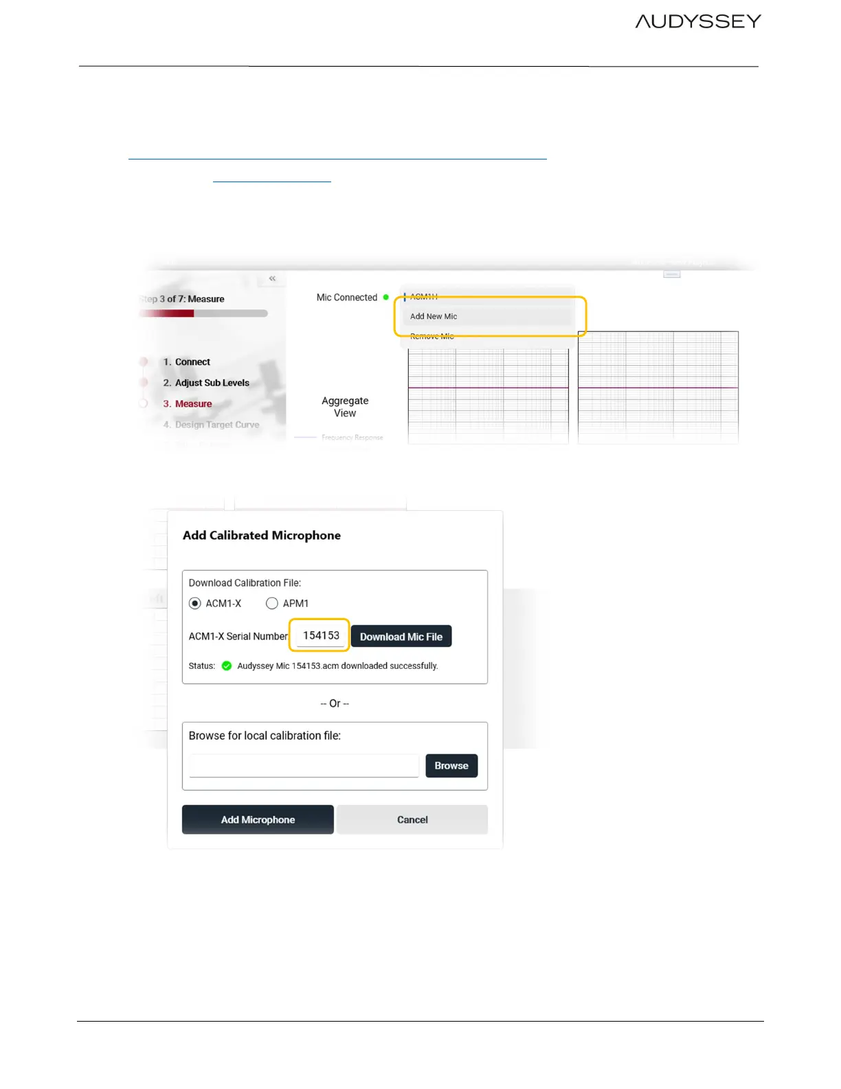 • On the ‘Measure’ or ‘Adjust Sub Levels’ page select ‘Add New Mic’: