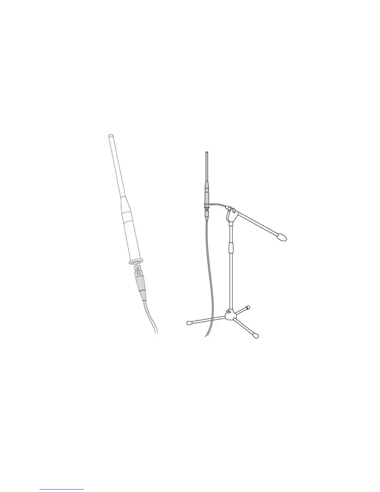 B Place the microphone stand upright and extend the boom arm. Attach the microphone holder to the