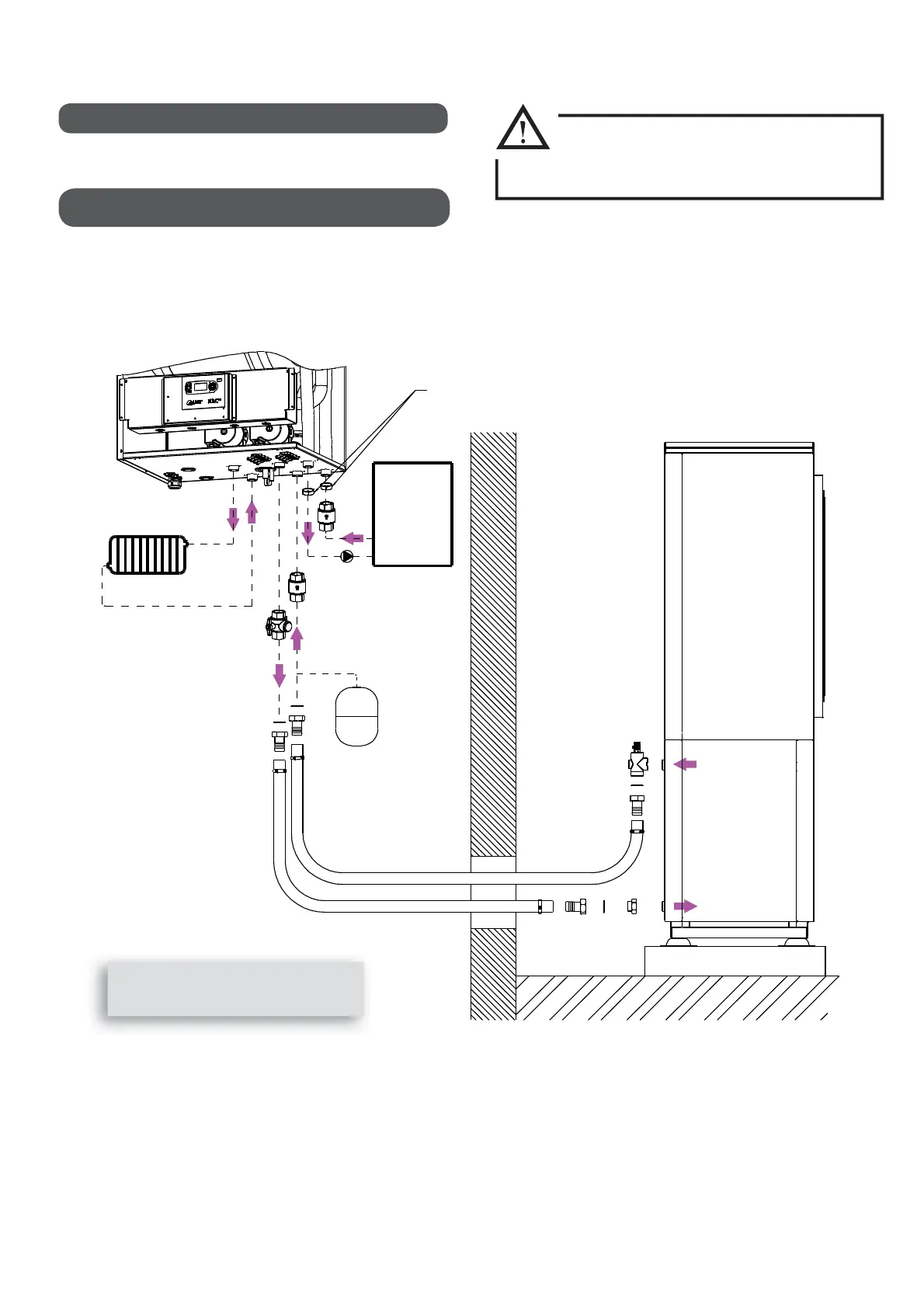 • Install two 30mm Ø exible pipes of at least 1.5m in length to the water inlet and outlet holes on the Heat Pump (outside the