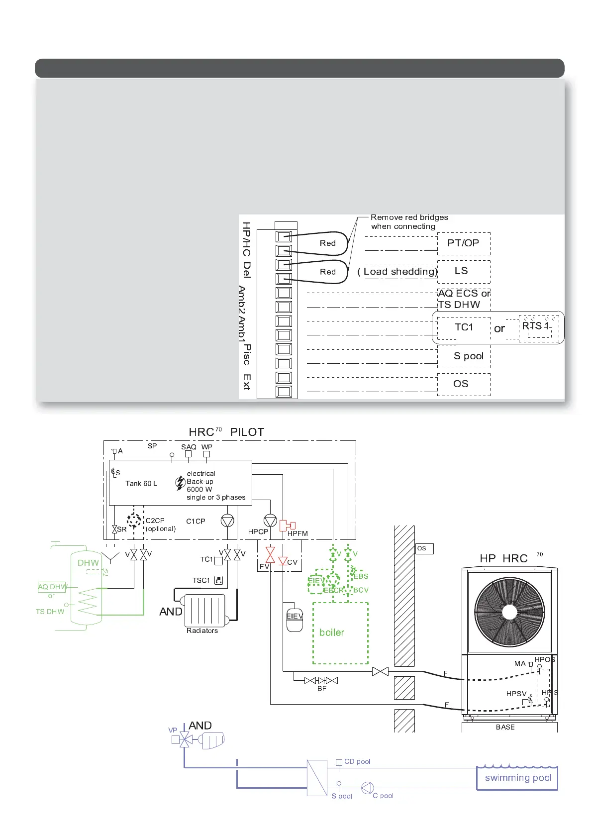 3WV = 3-way valve for radiator circuit (winter) or swimming pool circuit