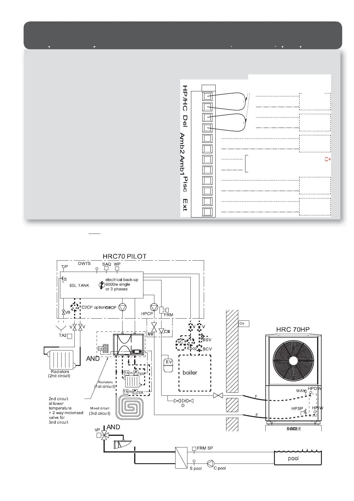 3WV = 3-way valve for radiator circuit (winter) or pool circuit (summer)