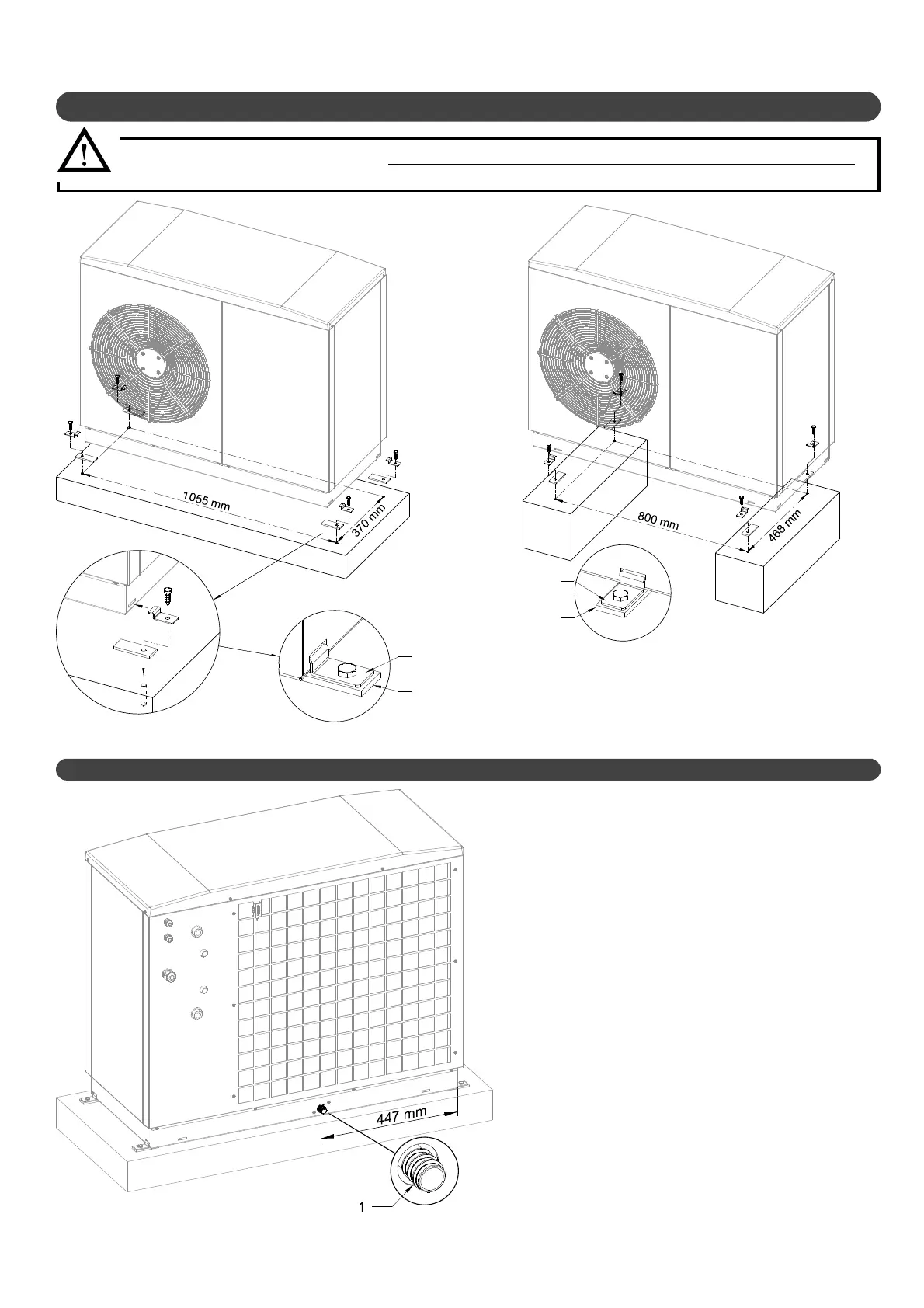The Heat pump must be installed on a hard and stable base, which is suffi ciently raised from ground level