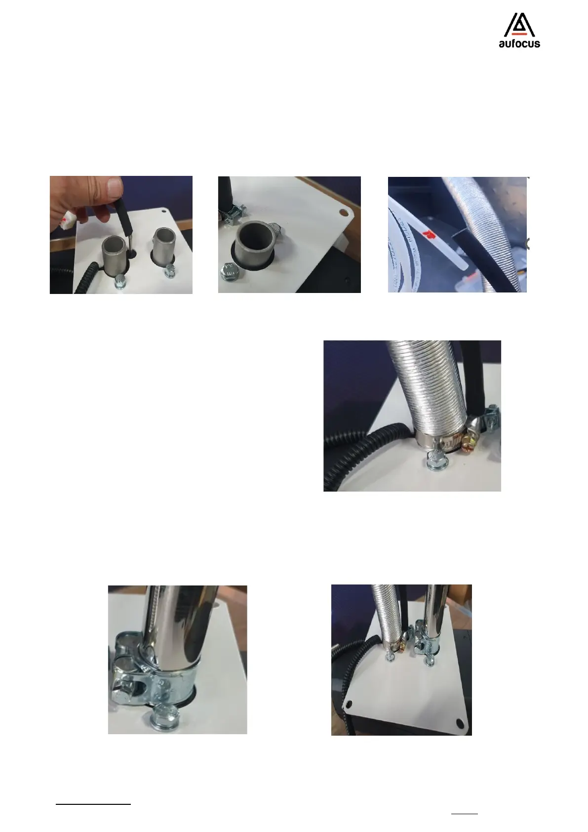 Mount the exhaust pipe to the base of the main unit using the supplied heavy-duty clamp. (Don’t
