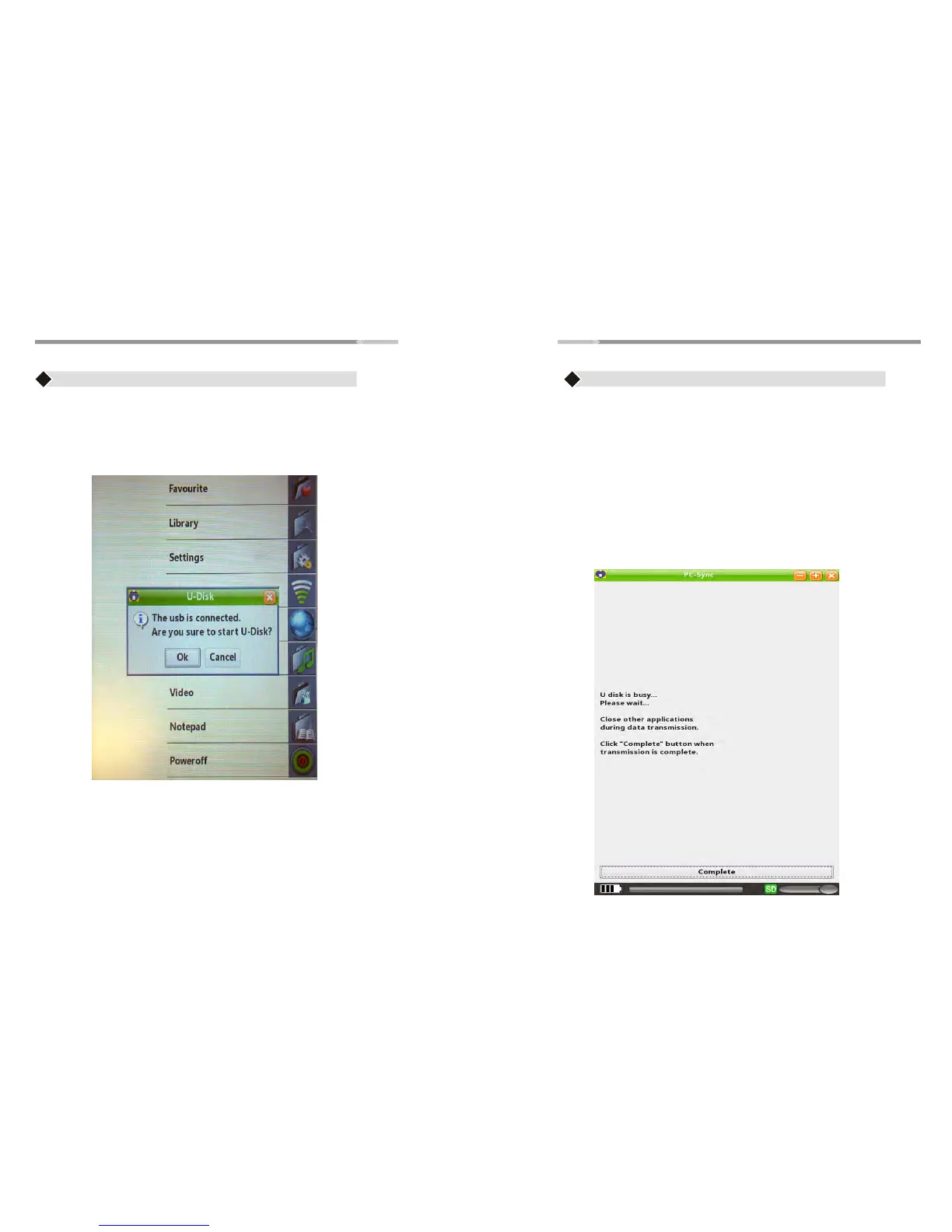 ♦ Pop up window will appear on the device "The usb is connected. Are
