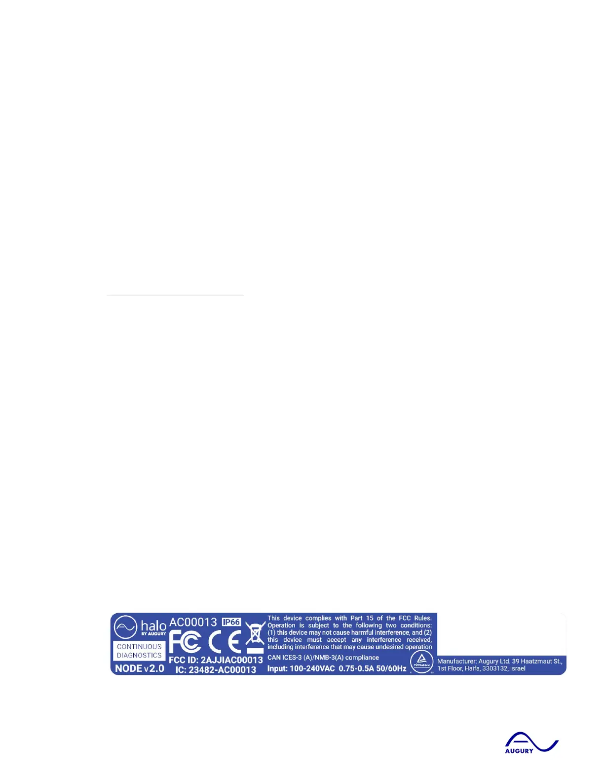 ● The Node is installed only as part of a full Augury Halo system installation, by