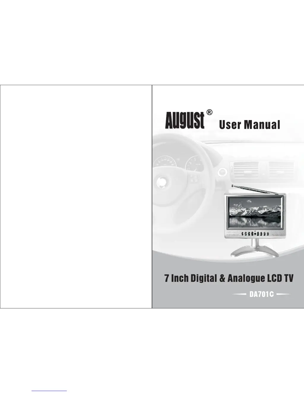 If your August LCD TV shows no picture and produces no sound, check the connection with the AC adapter or car adapter. Ensure you are using an authorized power supply. Also, verify that the power switch on the side of the TV is turned on and that the TV is not on standby because it was switched off using the POWER button on the remote.