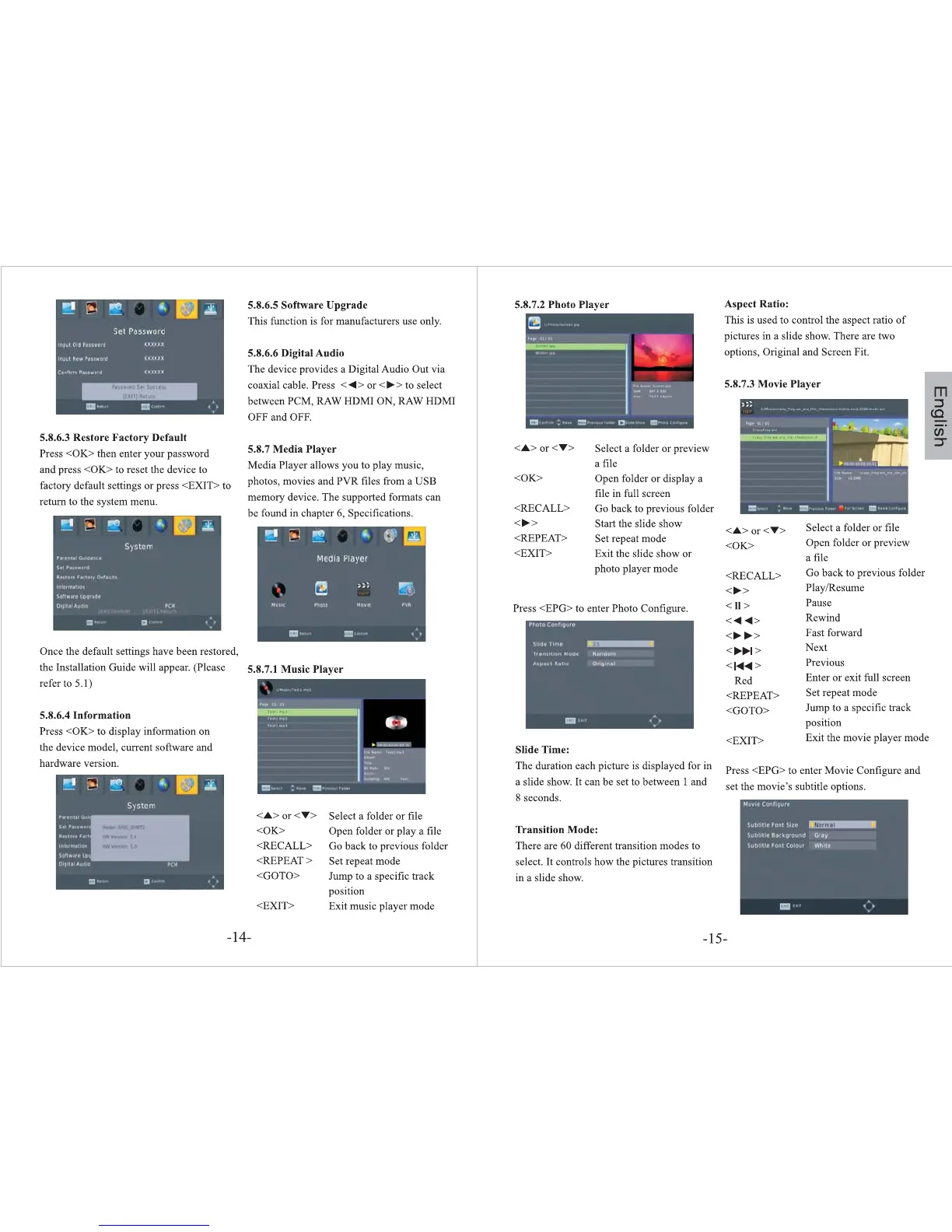 August DVB400 - System Management and Media Player; Factory Default Restore; Device Information; Software Upgrade Procedure
