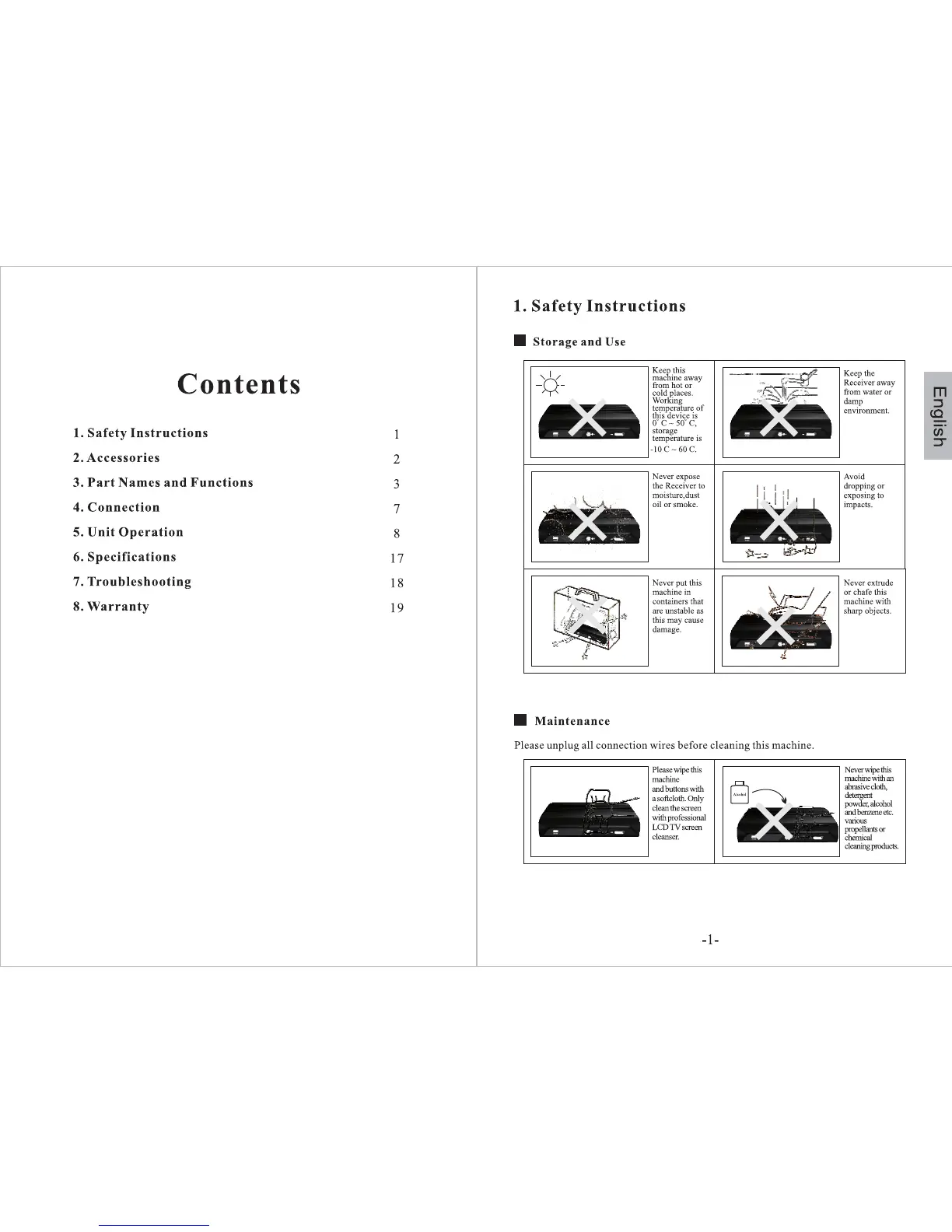 August DVB400 - Contents; Safety Instructions; Storage and Use; Maintenance