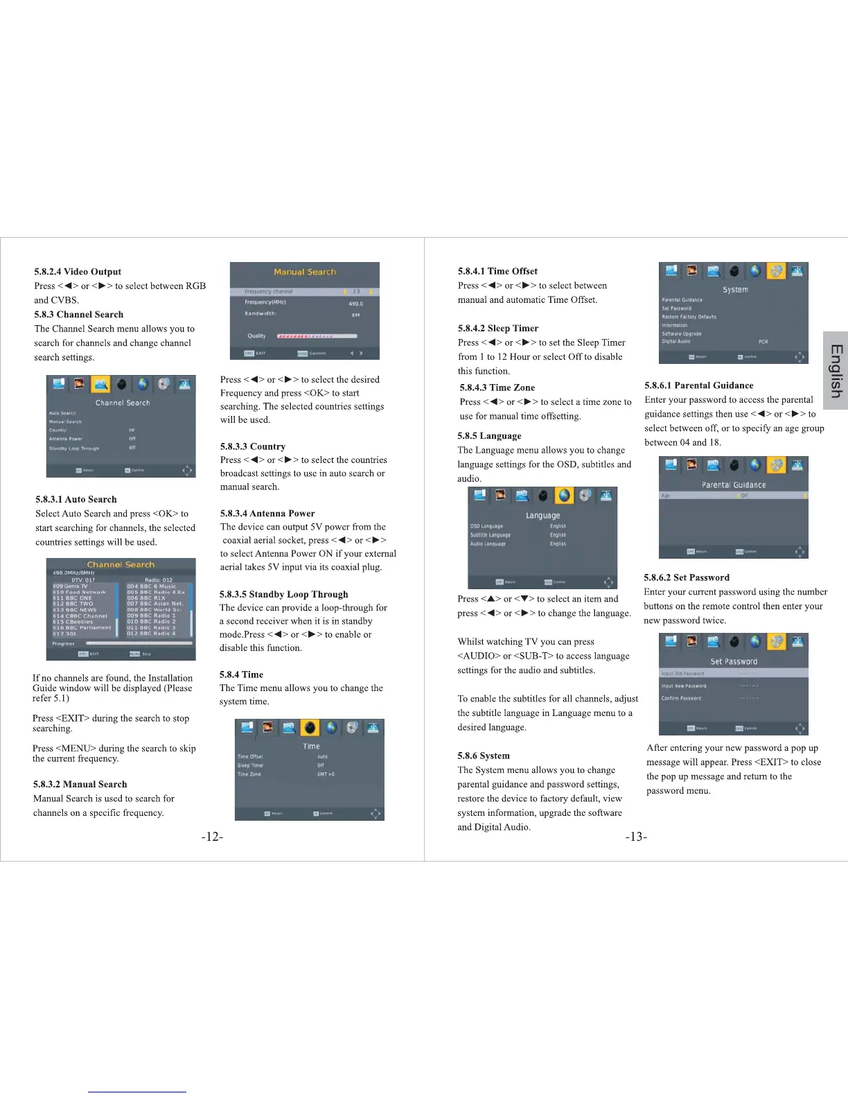 August DVB400 - Advanced Unit Settings; Video Output Configuration; Channel Search Methods; Time Settings