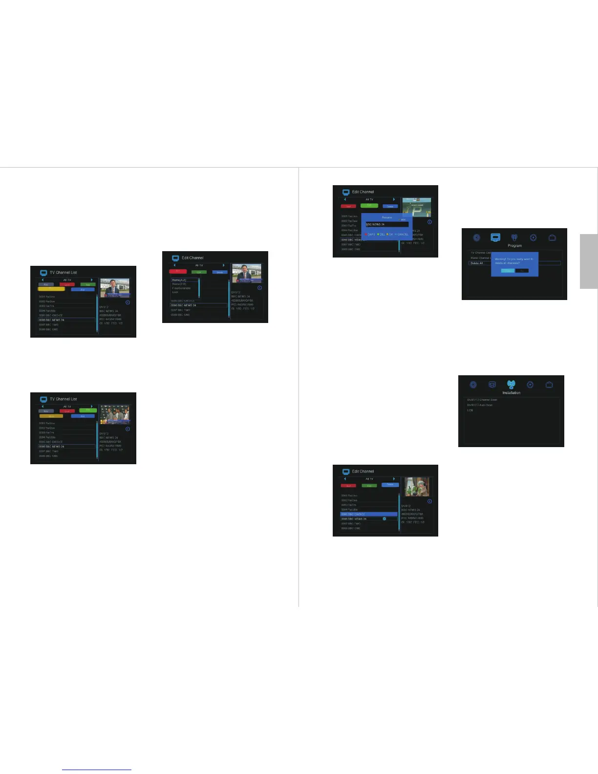 delete channels. Press the <BLUE> Edit