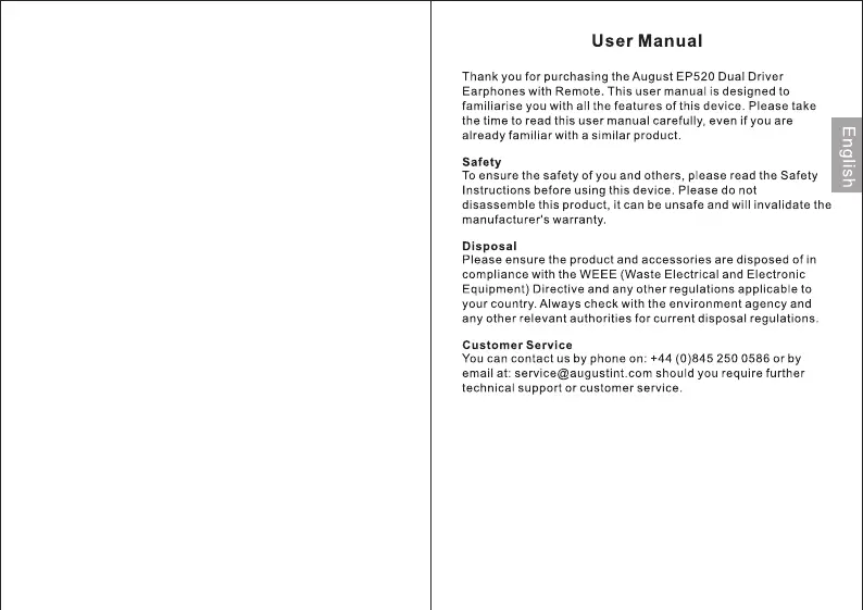 August EP520 - Safety and General Information; Safety; Disposal; Customer Service