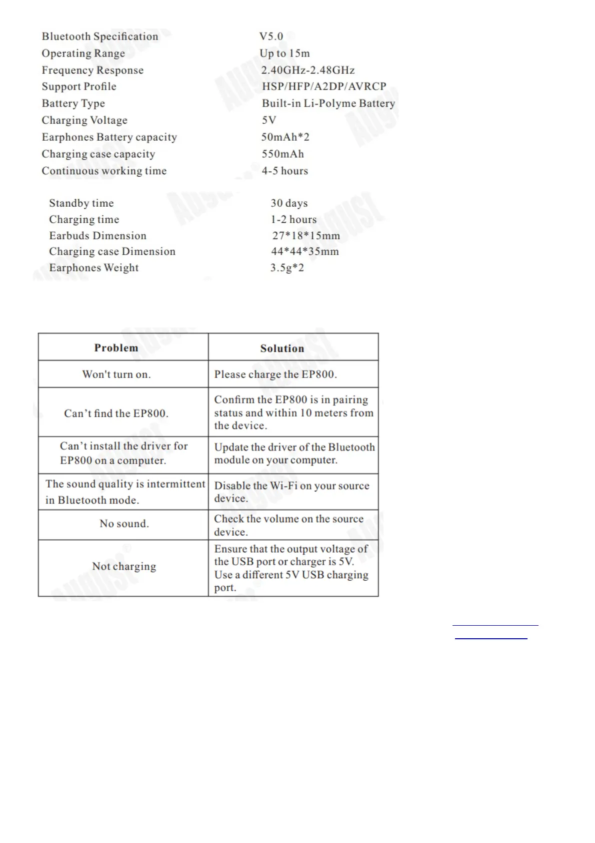 August EP800 Ultra Portable Lightweight TWS Bluetooth Earphones User Manual – Original PDF