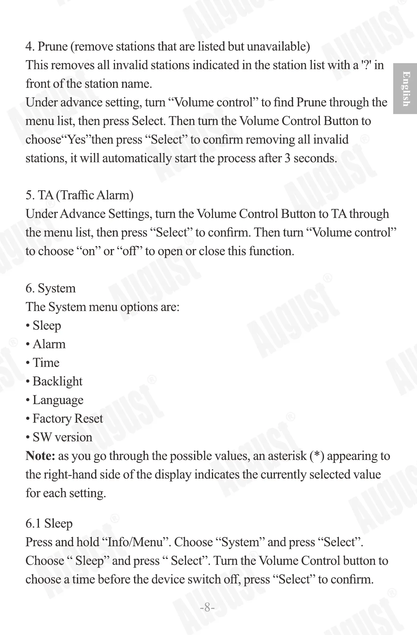 Choose " Sleep" and press " Select". Turn the Volume Control button to