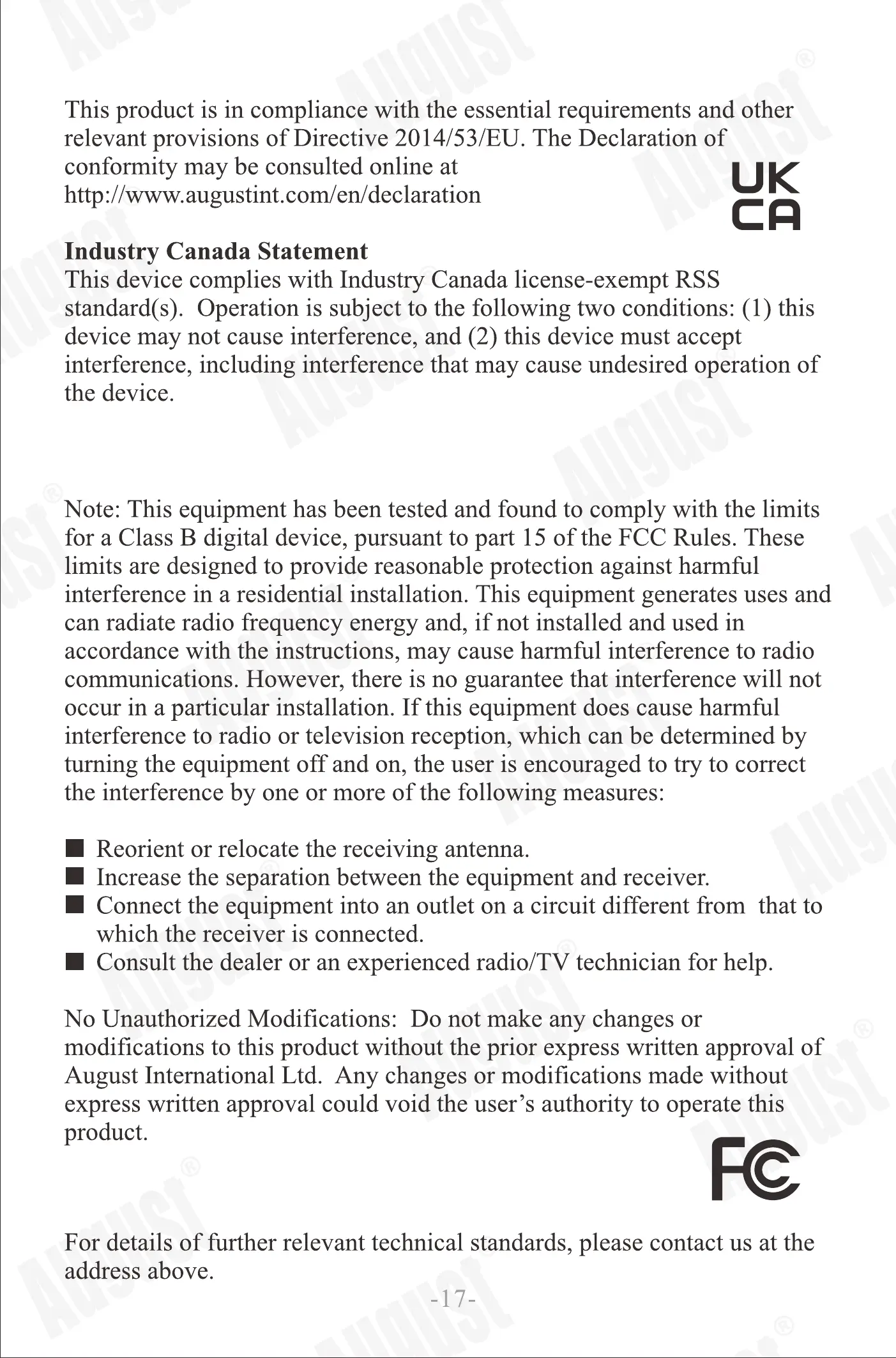 August International Ltd. Any changes or modifications made without