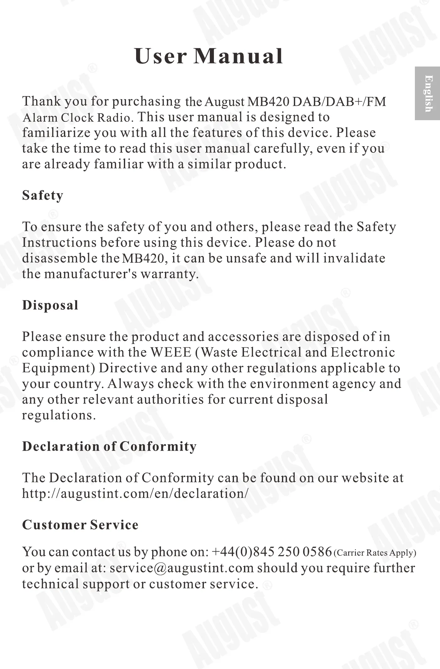 Thank you for purchasing theAugust MB420 DAB/DAB+/FM
