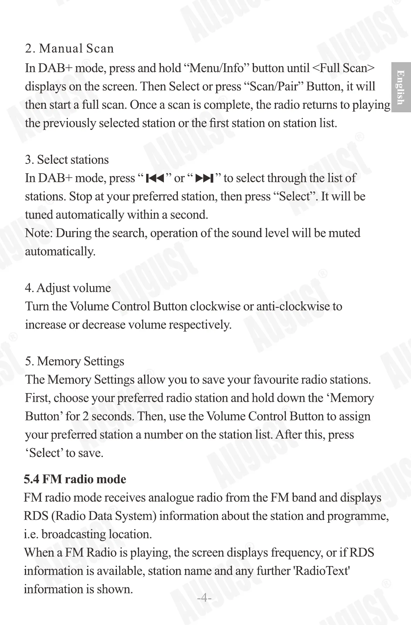 AUX-IN, DAB+ and FM mode.