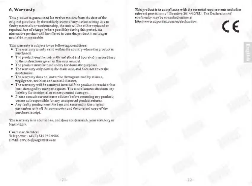 August VGB100 - Product Warranty Information