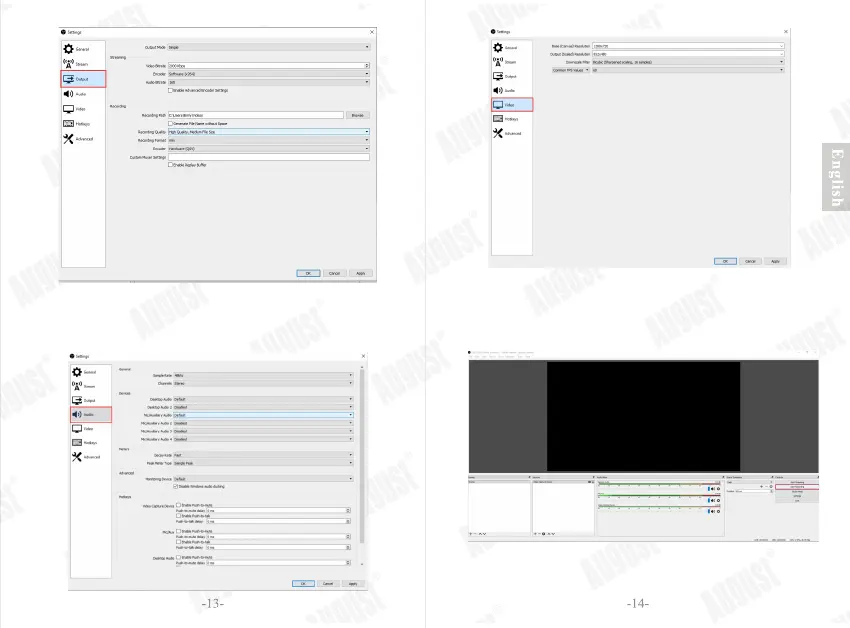 August VGB300 - OBS Audio and Video Settings; Starting Video Recording