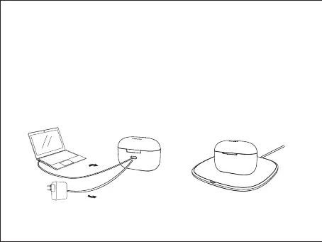 Fully charge the charging case before first use. To charge, connect the case to a USB