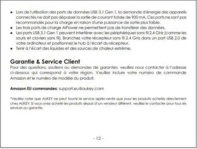 Aukey CB-H18 - Garantie & Service