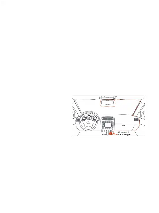 cable to the car charger and to the USB mini-B port of the DR02 J. After powering on
