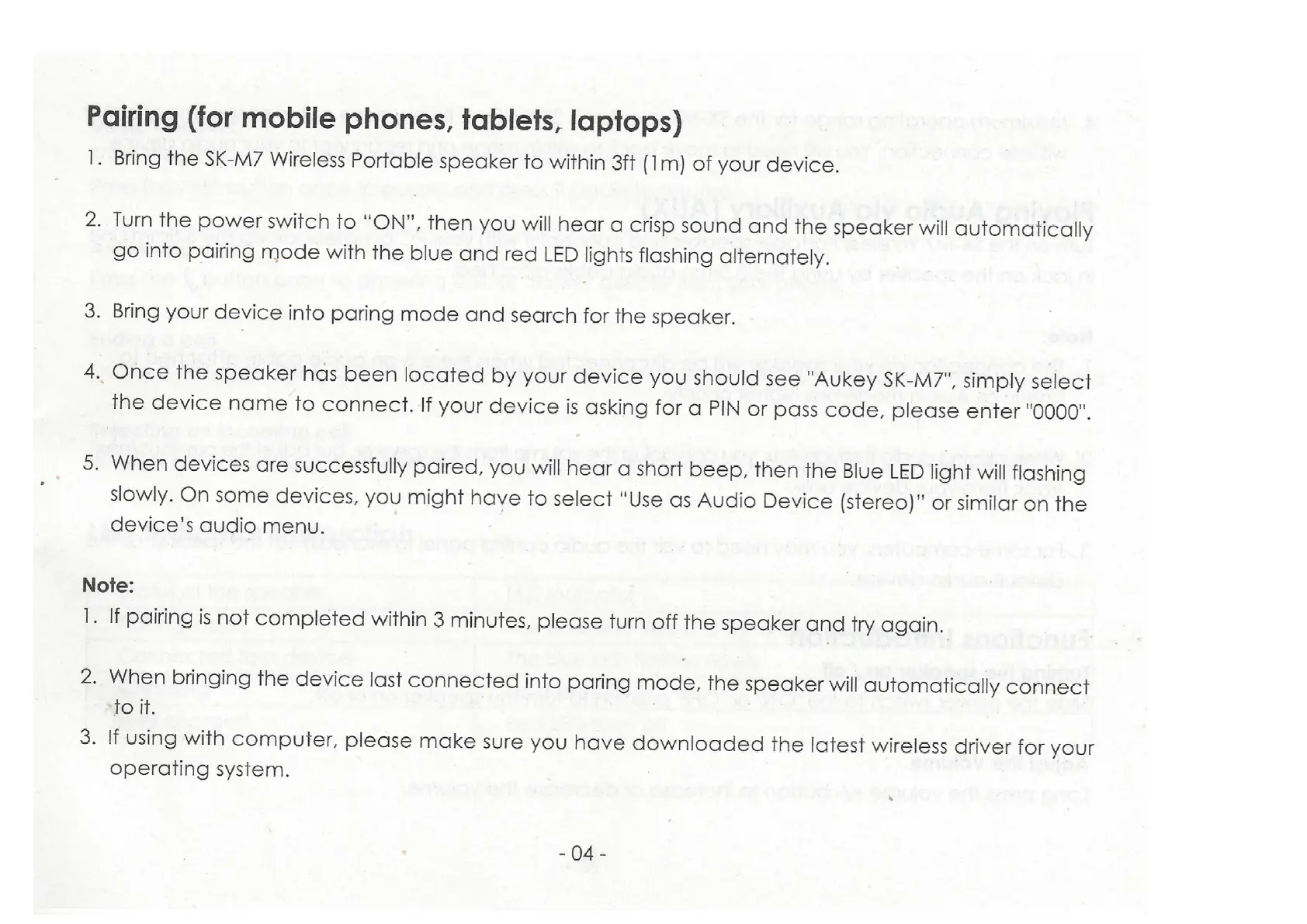 Aukey SK-M7 - Pairing (for Mobile Phones, Tablets, Laptops)