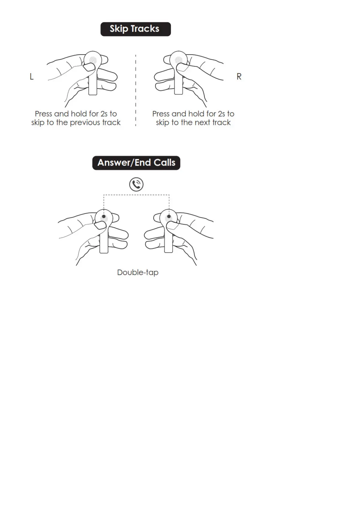 Aukey TWS EP-T21 - Skip Tracks; Answer;End Calls