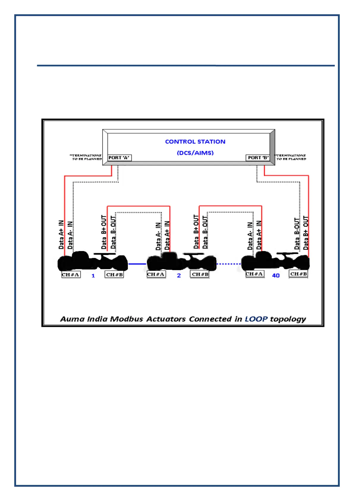 below show the two main topologies Line and Loop - used to connect our actuators for MODBUS