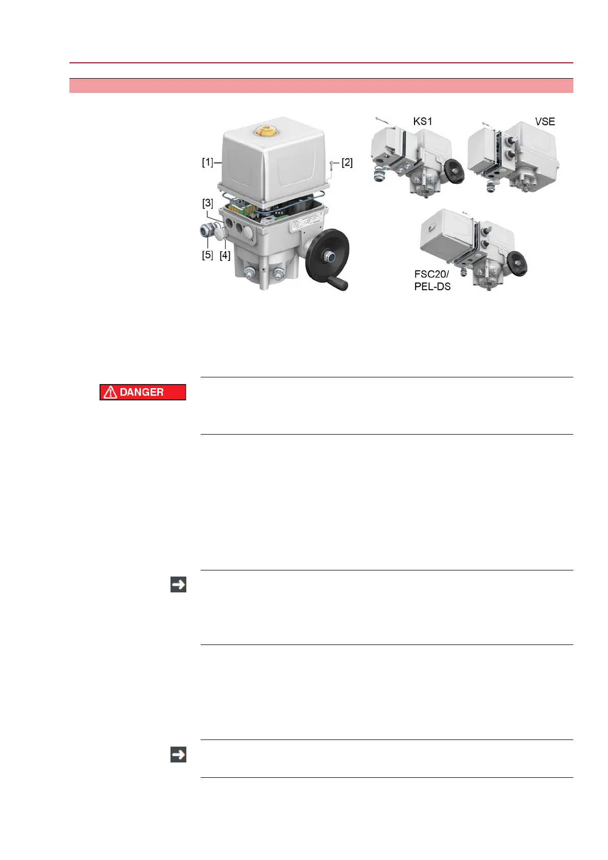 1.1 For standard version: Loosen screws [2] and remove hood [1] at the actu-