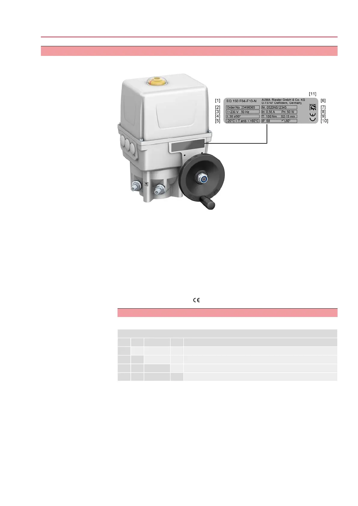 Figure 3: Name plate at actuator (with example)