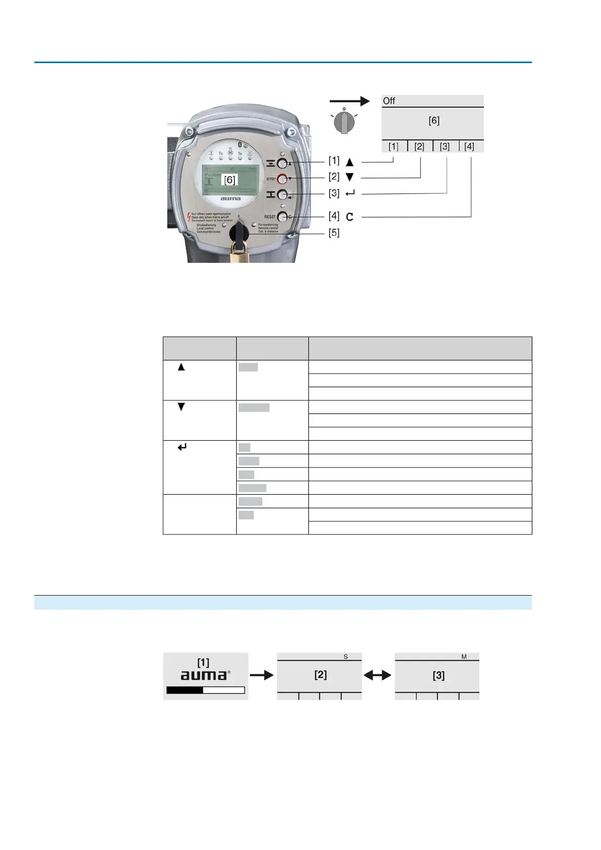 Table 25: Important push button functions for menu navigation