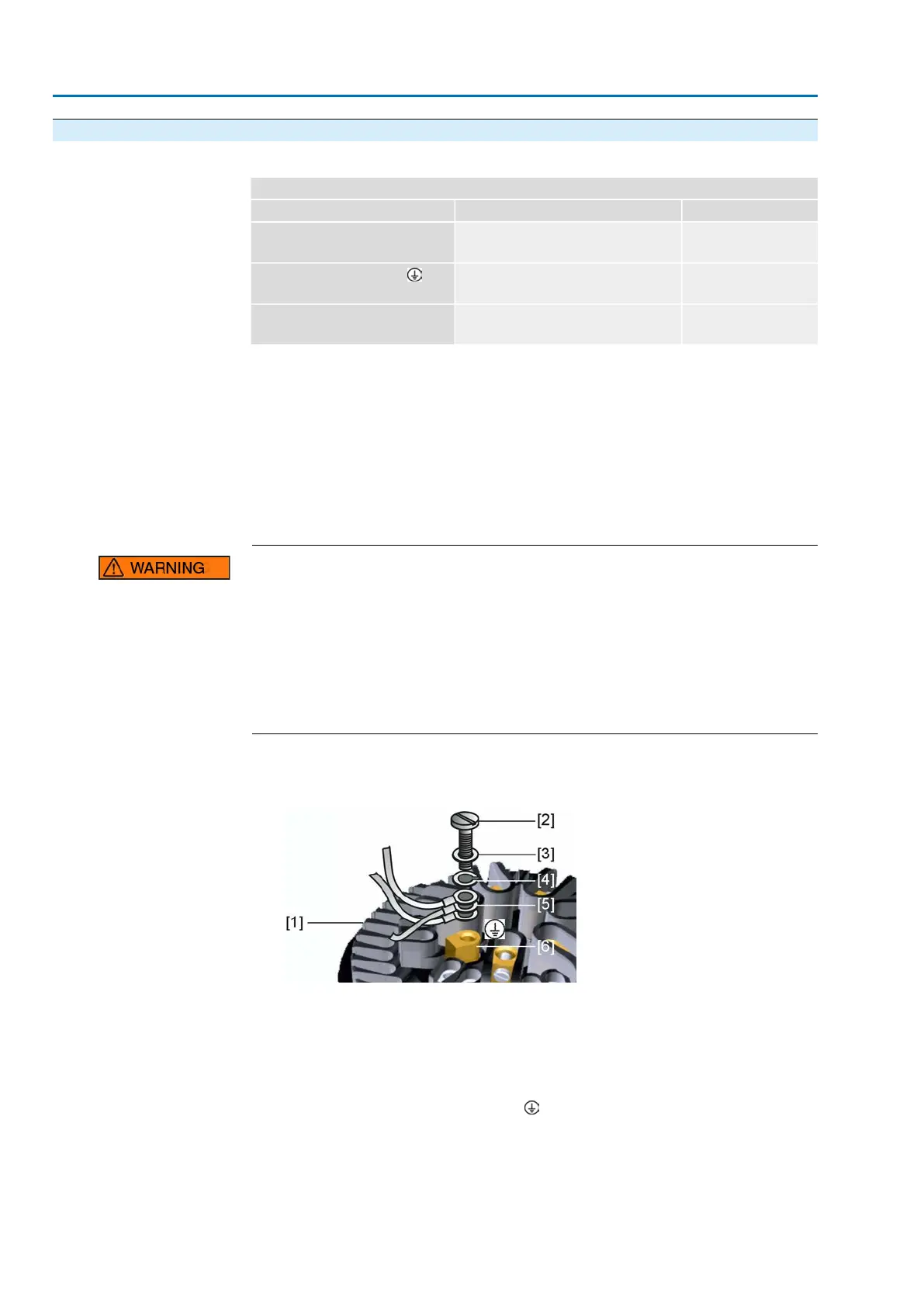 7. Tighten PE conductors firmly to PE connection using ring lugs (flexible cables)