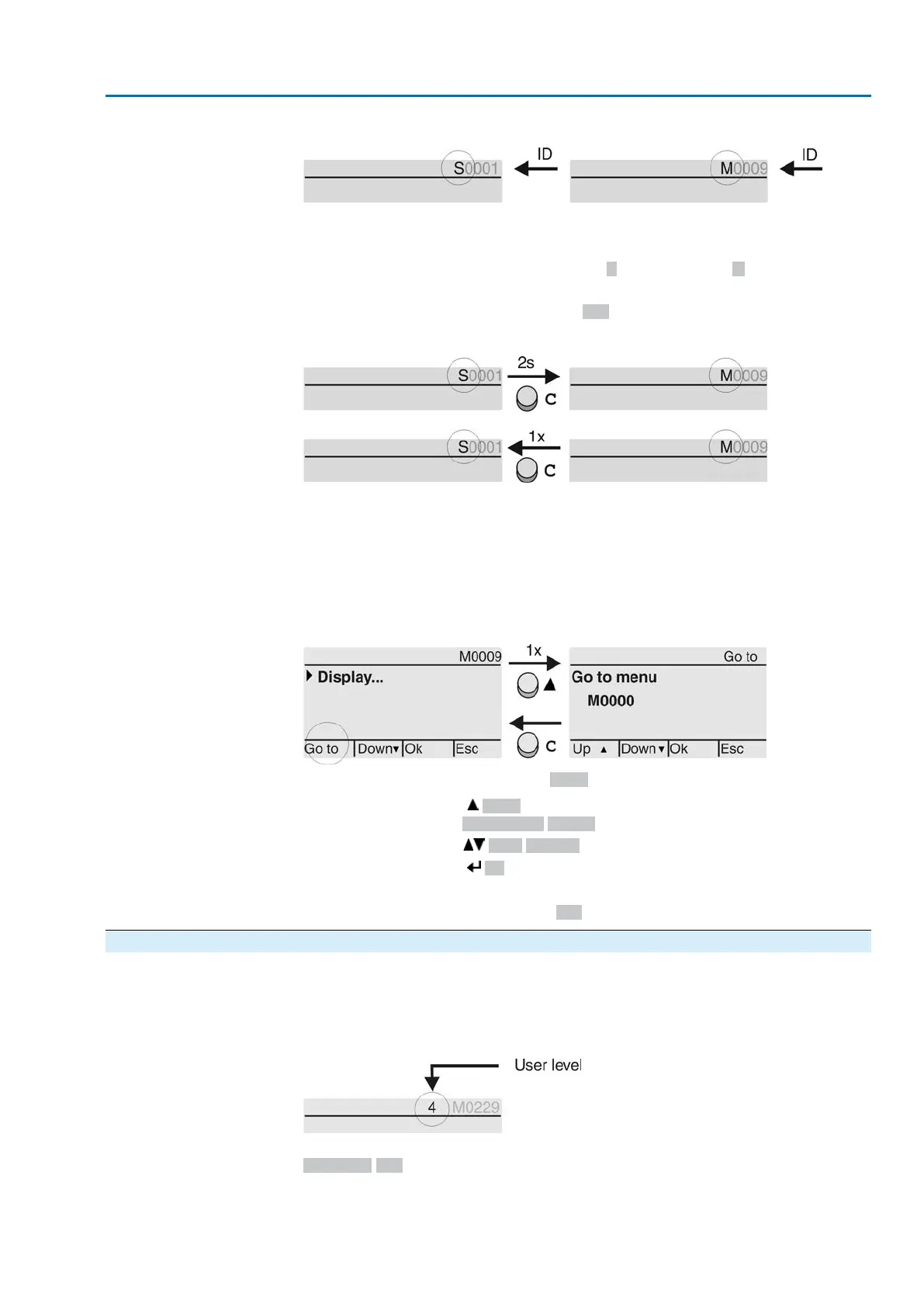 For this, set selector switch to 0 (OFF), hold down push button C for approx. 2