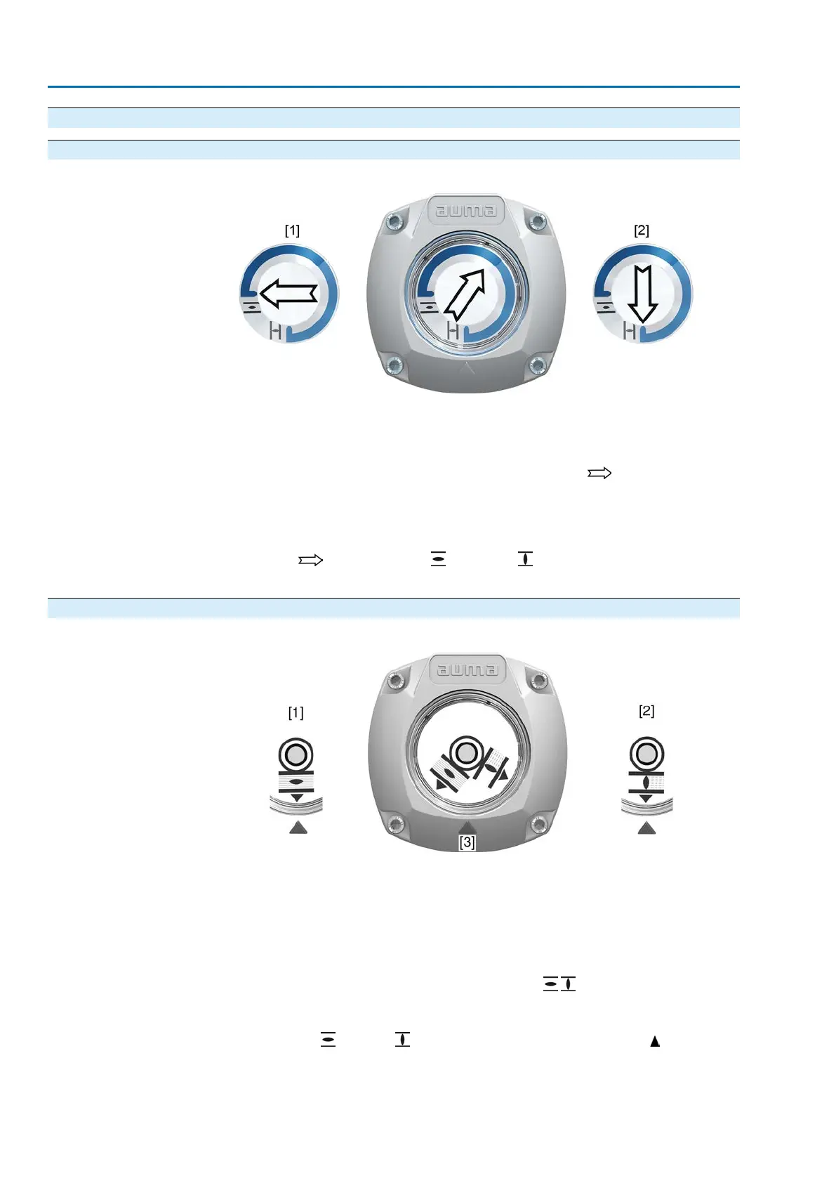 Used as running indication: Indicator disc (with arrow ) rotates during actu-