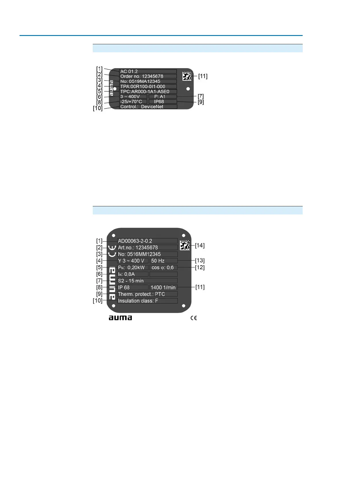 Figure 6: Name plate for actuator controls (example)
