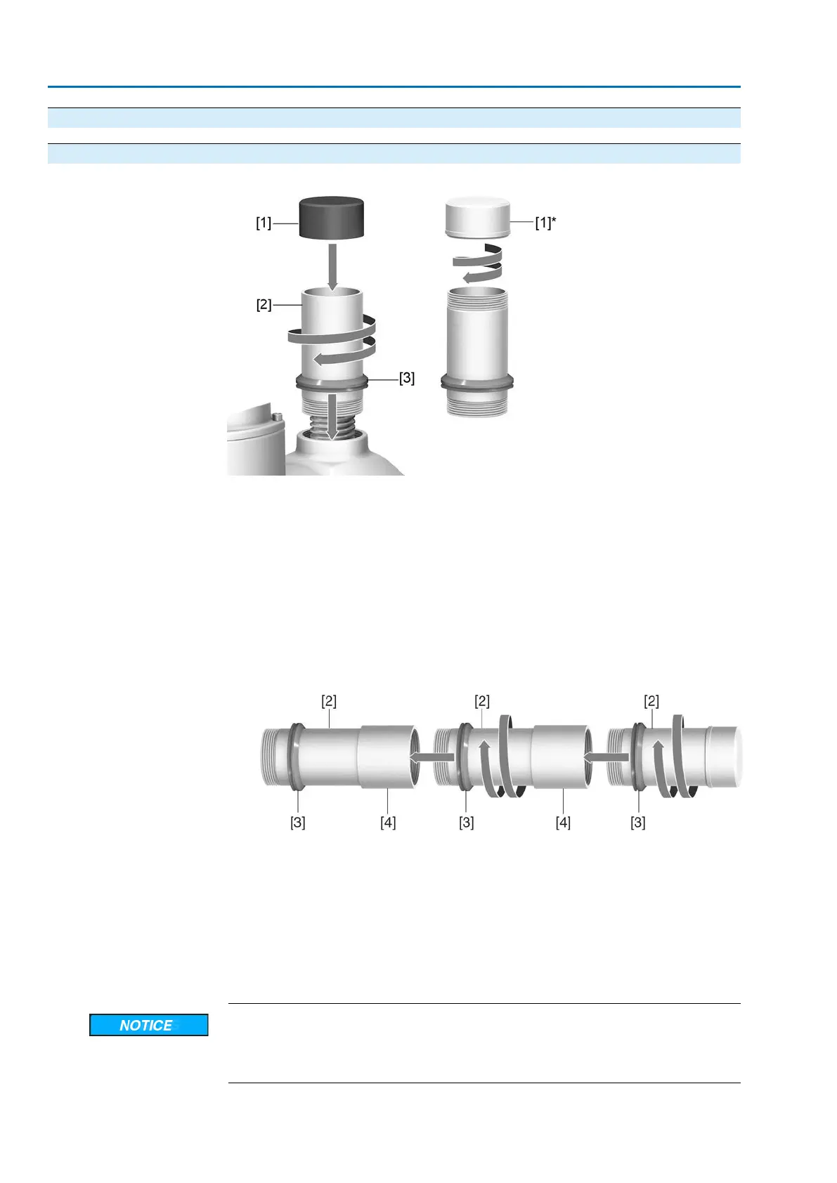 2. Screw stem protection tube [2] into thread and tighten it firmly.