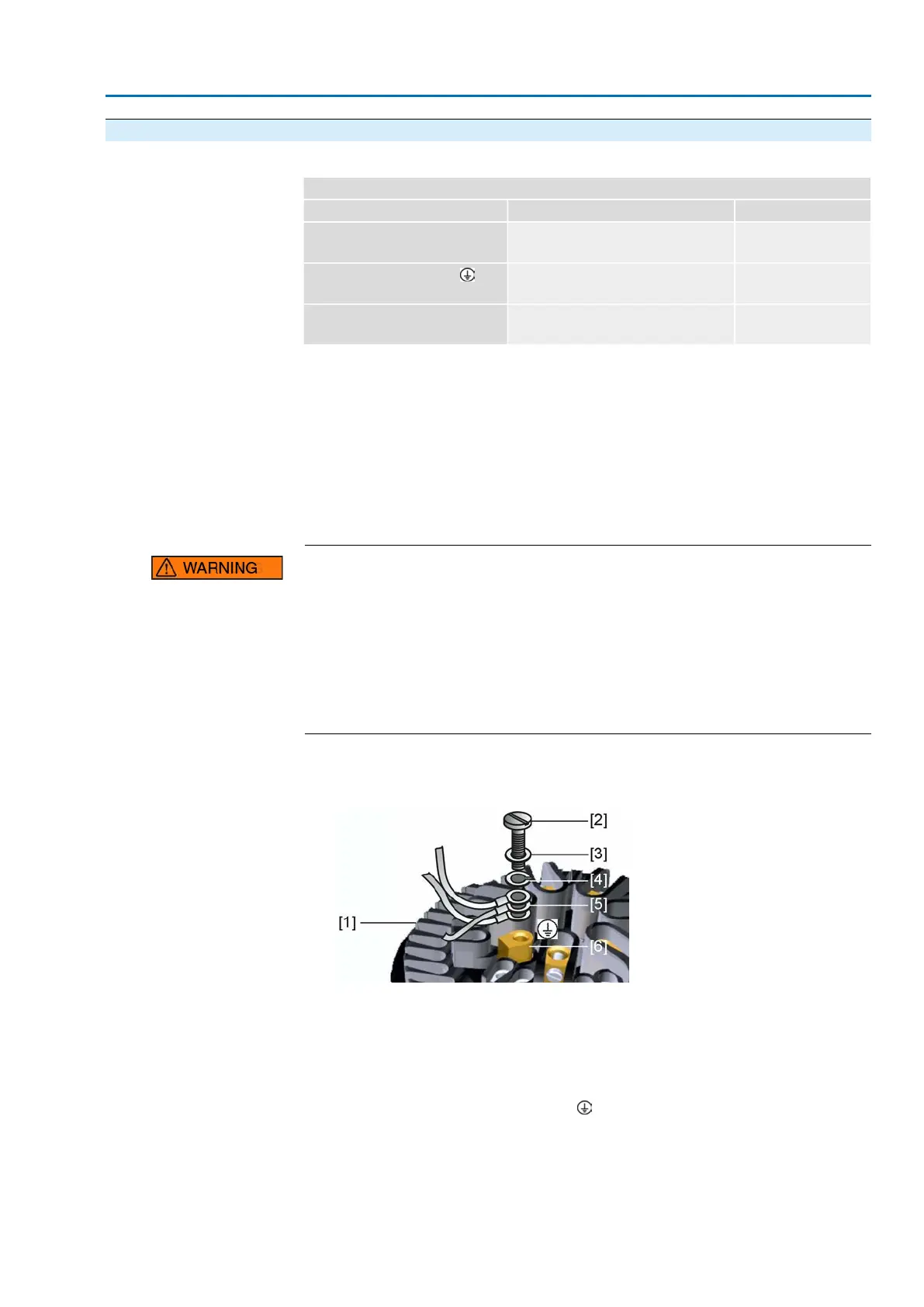 7. Tighten PE conductors firmly to PE connection using ring lugs (flexible cables)