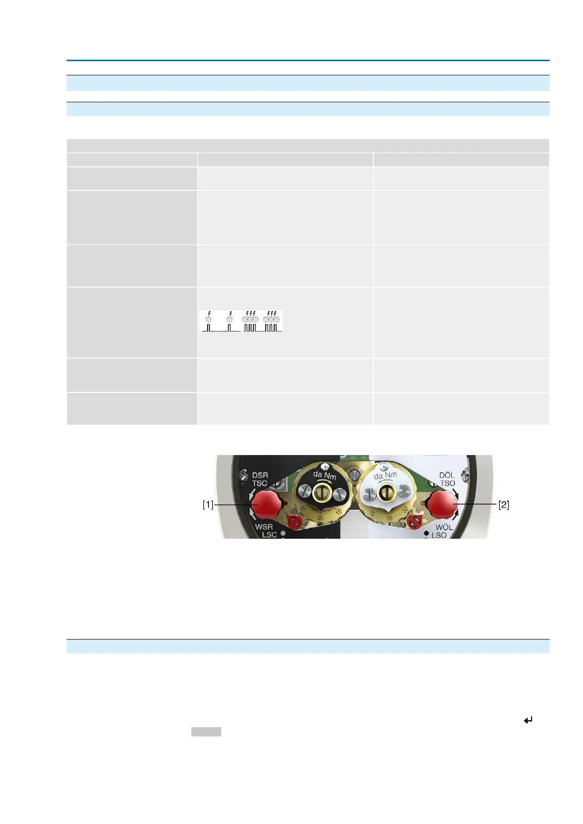 2. Turn test button [2] in direction of the LSO arrow: Limit switch OPEN trips.