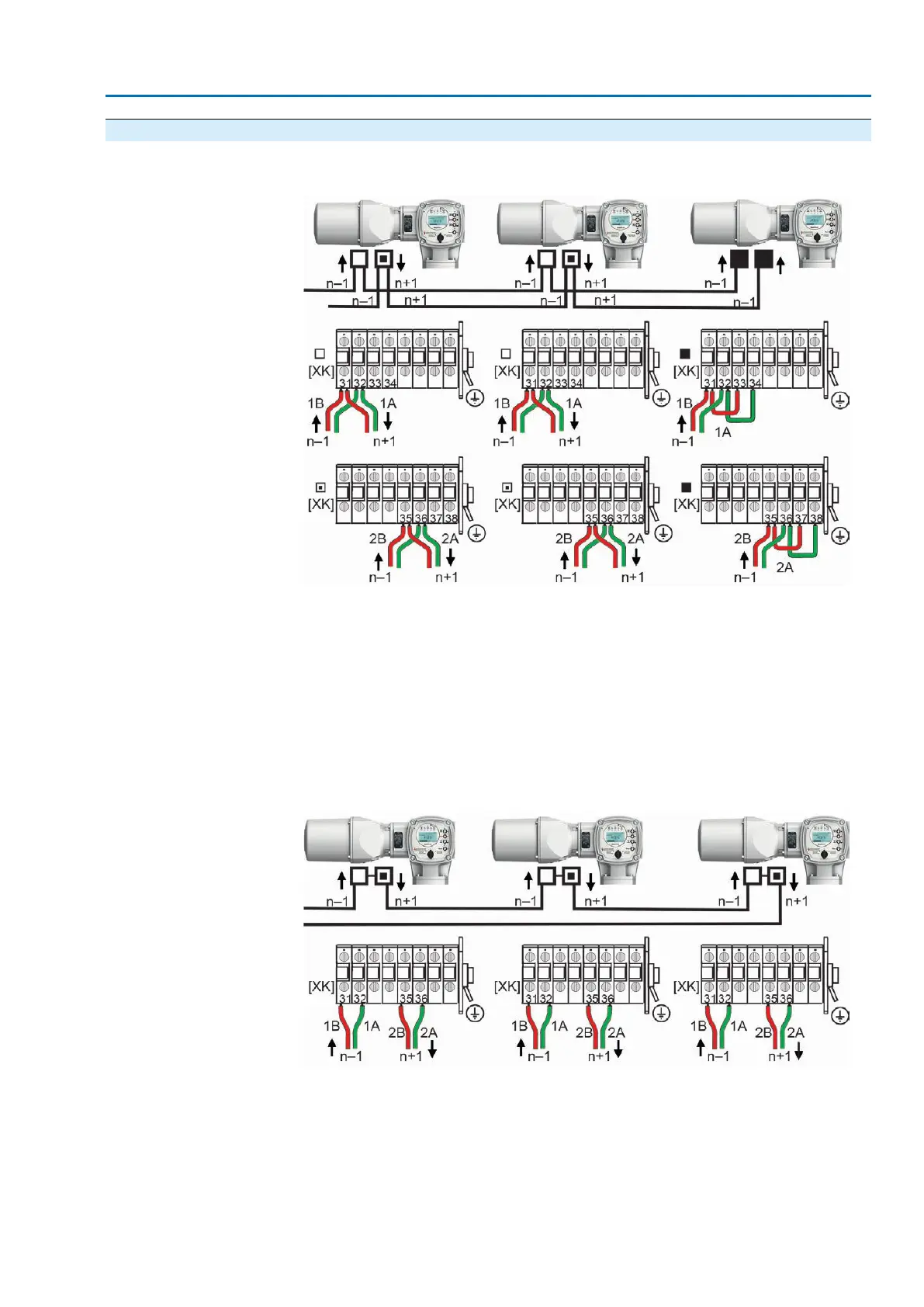 Figure 30: Terminal assignment for line topology (1-channel or 2-channel for AUMA